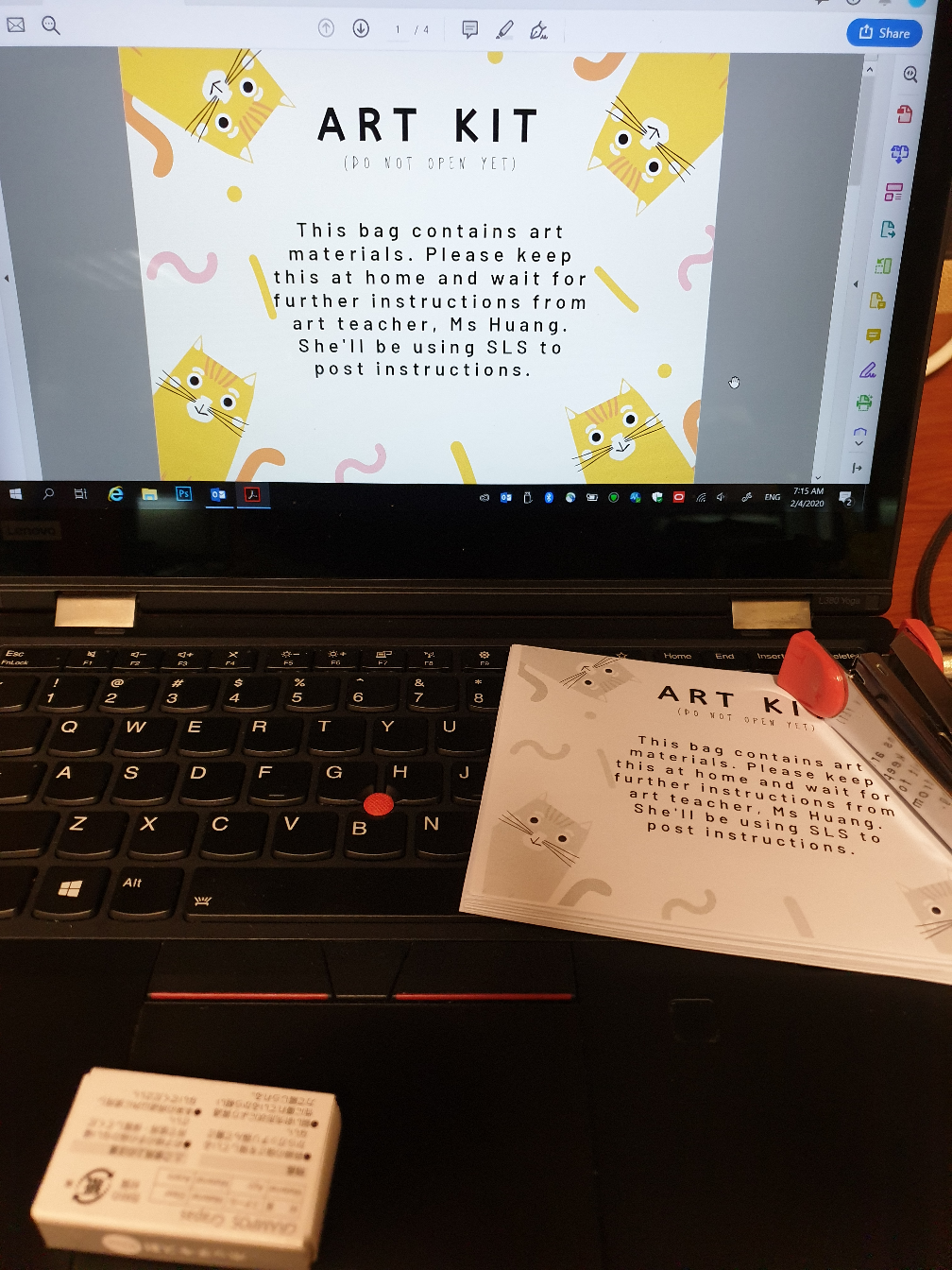Hi! These Art Kits were prepared for my students to bring home before the school closes for Home-Based Learning (HBL). I gave them to my lower primary students from 11 classes. As I didn't have time to pack for all, I brought some materials to their classes and we packed them together. Most of the materials were easily accessible but they might not be be found in the children's homes.